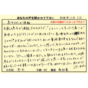 今日のテーマは「便秘改善の希望が出てきた」 数日前に便秘解消法を伝えた方が来院した。4日に一回のひどい便秘で切れ痔があり排便時には出血もあった。それが何年も続いていたようだ。この方は便意が無くトイ...